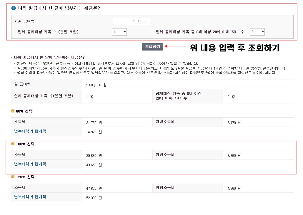 월 급여액과 공제대상 가족 수를 입력해 모의계산하는 방법이 있습니다.