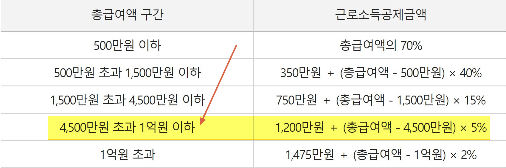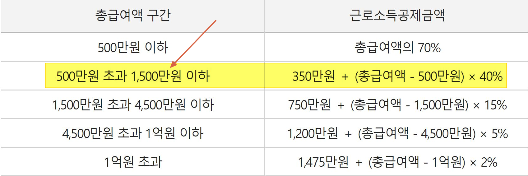 근로소득공제 계산식에 내 총급여액을 대입하면 나의 근로소득공제액을 알 수 있어요.