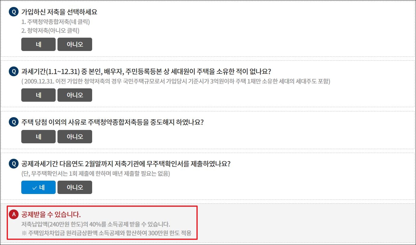 보험료 국민건강·고용·노인장기요양보험료 전액 공제 주택자금공제 주택임차 차입금 원리금 상환액 상환액의 40% 연 400만원 한도 주택마련저축(청약/주택청약종합저축)